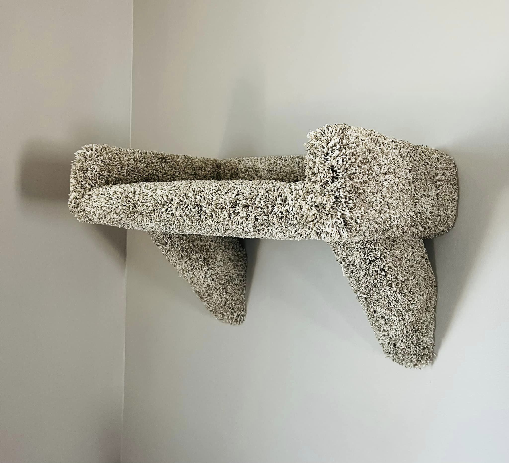 The kitty cloud couch is 12″x18″ inside the walls, 12″x19.5″ total. Screws are preset 16″ apart with 12″ diagonal braces underneath to secure into wall studs. This wall-mounted landing offers your cats a place to play, snuggle, sleep, or even launch to the next cloud on your wall!