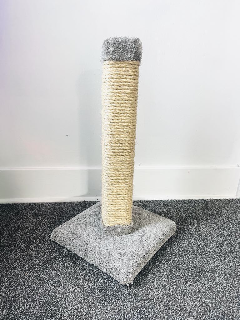 The Bobo was named after one of our kittens, whom we nicknamed Instapurr since she purred the moment you began to pet her. It is a 25″ tall scratching post wrapped with sisal rope and capped with carpet, with a 12″x12″ base, also carpeted on the bottom of the base. This scratching post is made for your cat to scratch and wrestle. Ideal for homes with limited floor space and heavy scratchers, the Bobo will save your furniture and look beautiful!