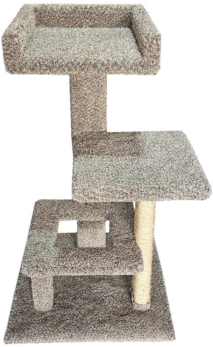 The Fruffy+ is the plus sized take on the Fruffy, named after our cat Fruffy who was the mama of Chloe and Nugget. It’s the same basic design, but all the landings are enlarged from 12″x12″ to 15″x15″; the 3′ post is doubled; the 2′ post is tightly wrapped in sisal rope; and the base is enlarged from 18″x18″ to 24″x24″ for stability. Whether you have a Maine Coon, Norwegian Forest Cat, a plain ol’ fat cat, or just multiple normal cats who like to snuggle, the Fruffy+ is a great option!